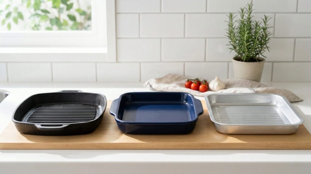 耐熱皿やグラタン皿は、グリルパンの代用として最も実用的な選択肢のひとつです。