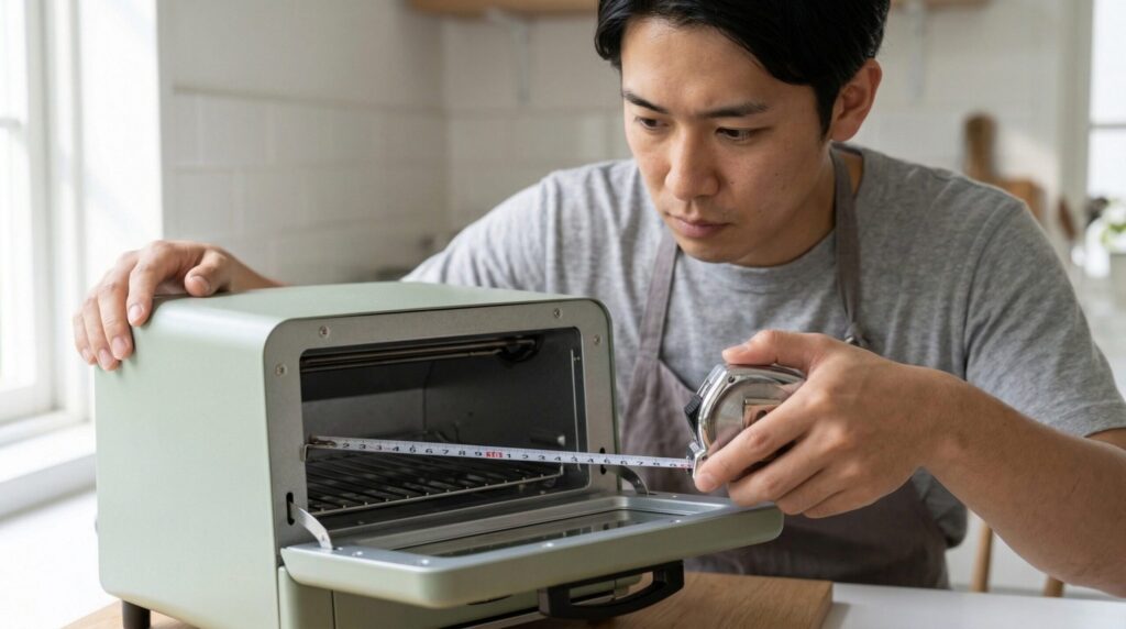 購入前に、お手持ちのアラジントースターの庫内サイズを測っておくと、お店でサイズ確認がスムーズですよ!