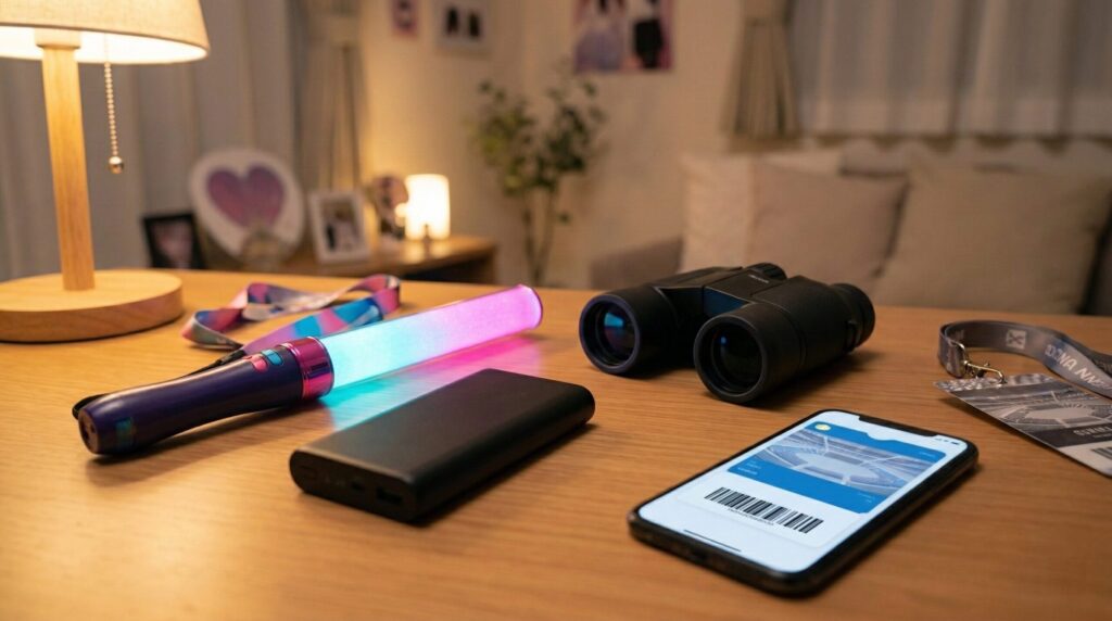 特に双眼鏡は吊るし席の必須アイテム!演出全体を肉眼で楽しみつつ、ここぞという場面では双眼鏡で推しをアップで見る──この使い分けが最強です。