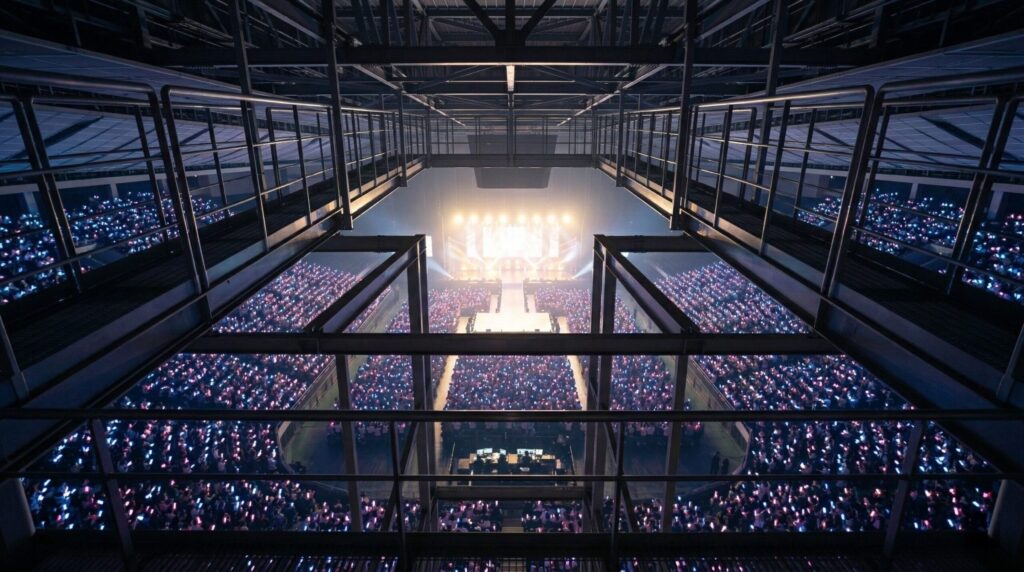 こうした座席設計の多様化により、今後のホロライブライブでも「吊るし席」的な高所からの特別な視点を楽しめる機会は増えていく可能性があります。大規模な会場では天井近くの座席が設けられることも珍しくなく、そうした席が「吊るし席」としてファンの間で語られる文化は、これからも続いていくでしょう。